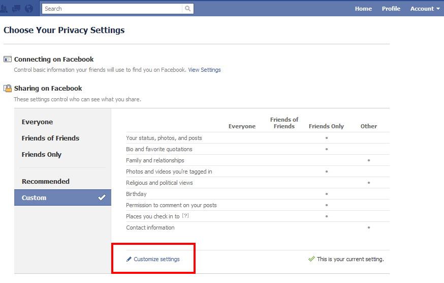 এজন্য Account > Privacy Settings > Customize Setting e যান। এখানে